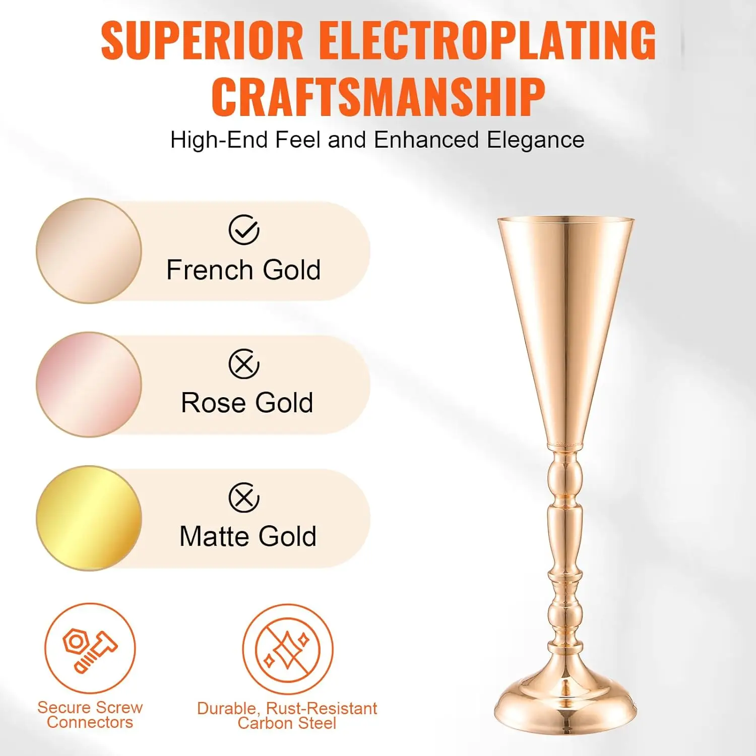 10PCS 43cm/16.9” Tall Wedding Flower Vase, Metal Wedding Trumpet Centerpiece, Gold Floral Stand Display Rack for Wedding Party