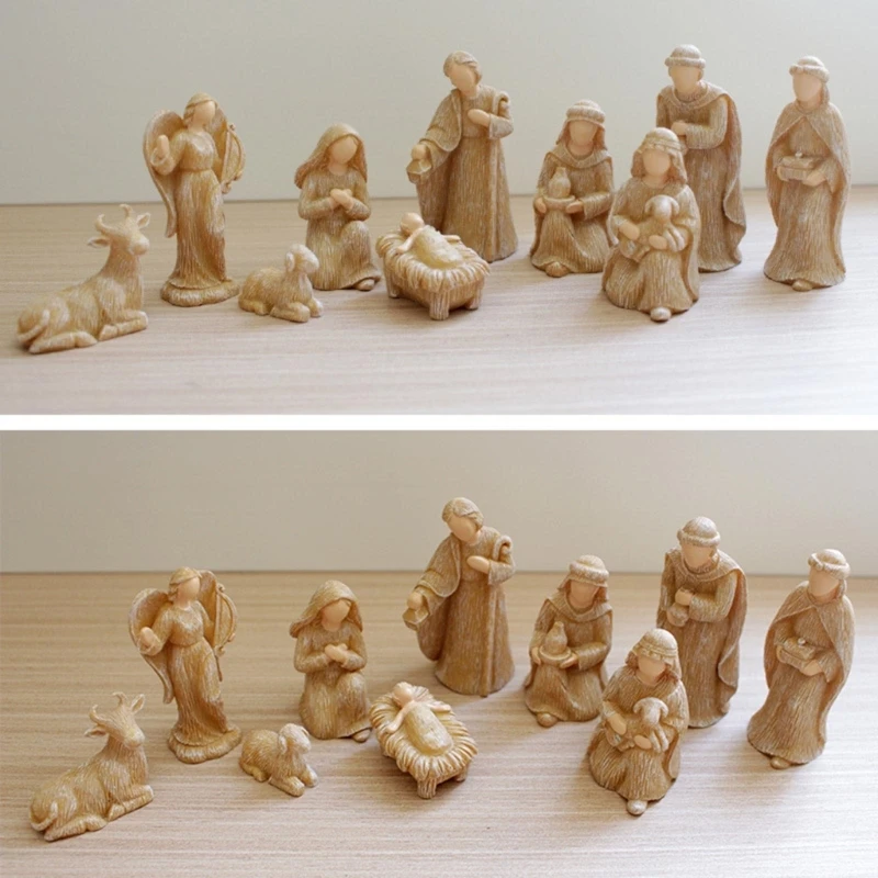 10pcs Resin Miniature Nativity Figurine Set Desktop Ornament Family Christmas Nativity Sculptures Handicrafts Church