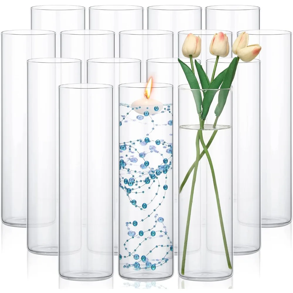 - Value Package: you will get 16 pack tall glass cylinder vases, suitable for home flower arrangements, floating candle holders, and ideal for home decor, wedding centerpieces, formal dinners table ornaments; Sufficient quantity to meet your daily use and replacement needs