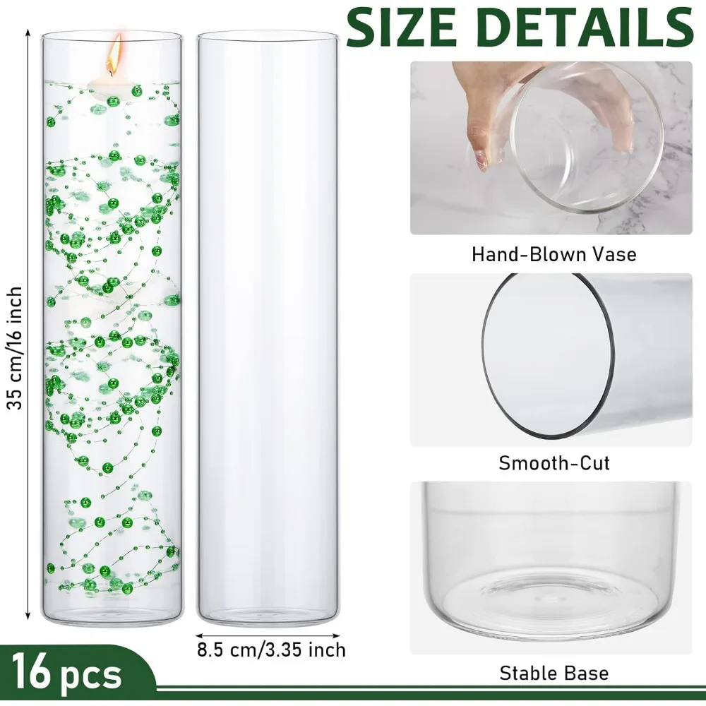 16 Pack Glass Clear Cylinder Vases Tall Floating Candle Holders Cylinder Vase Bulk Clear Flower Vases Center of Wedding Tables