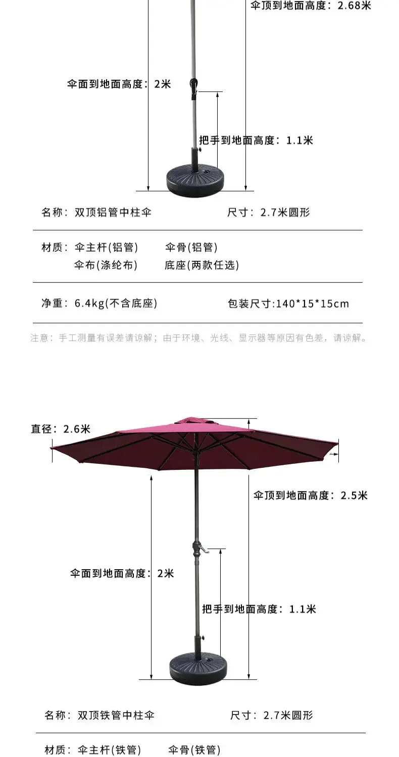 2.7m Outdoor Umbrella 파라솔 대형 Courtyard Sun Parasol Beach Folding Pillar Paraguas sombrilla playa Balcony Sunshade Canopy Patio
