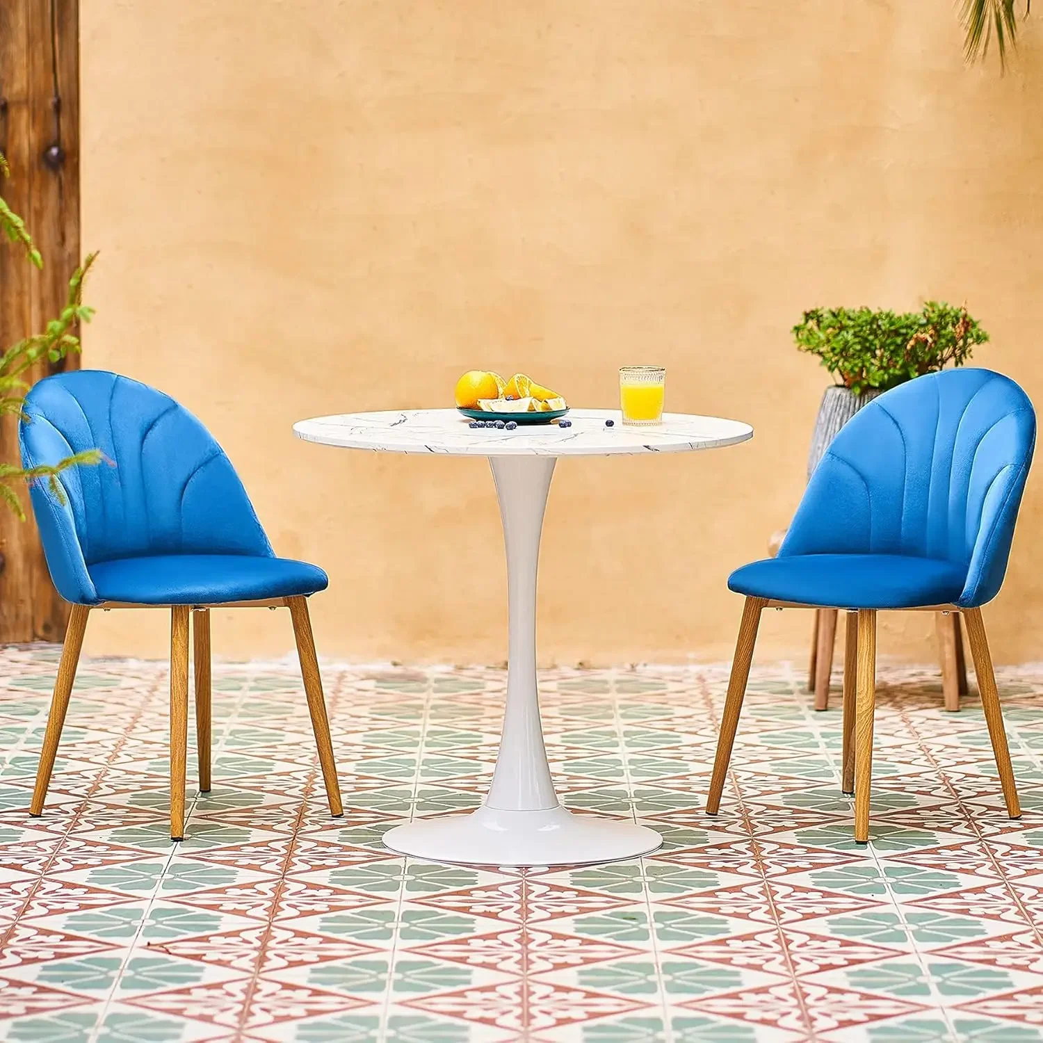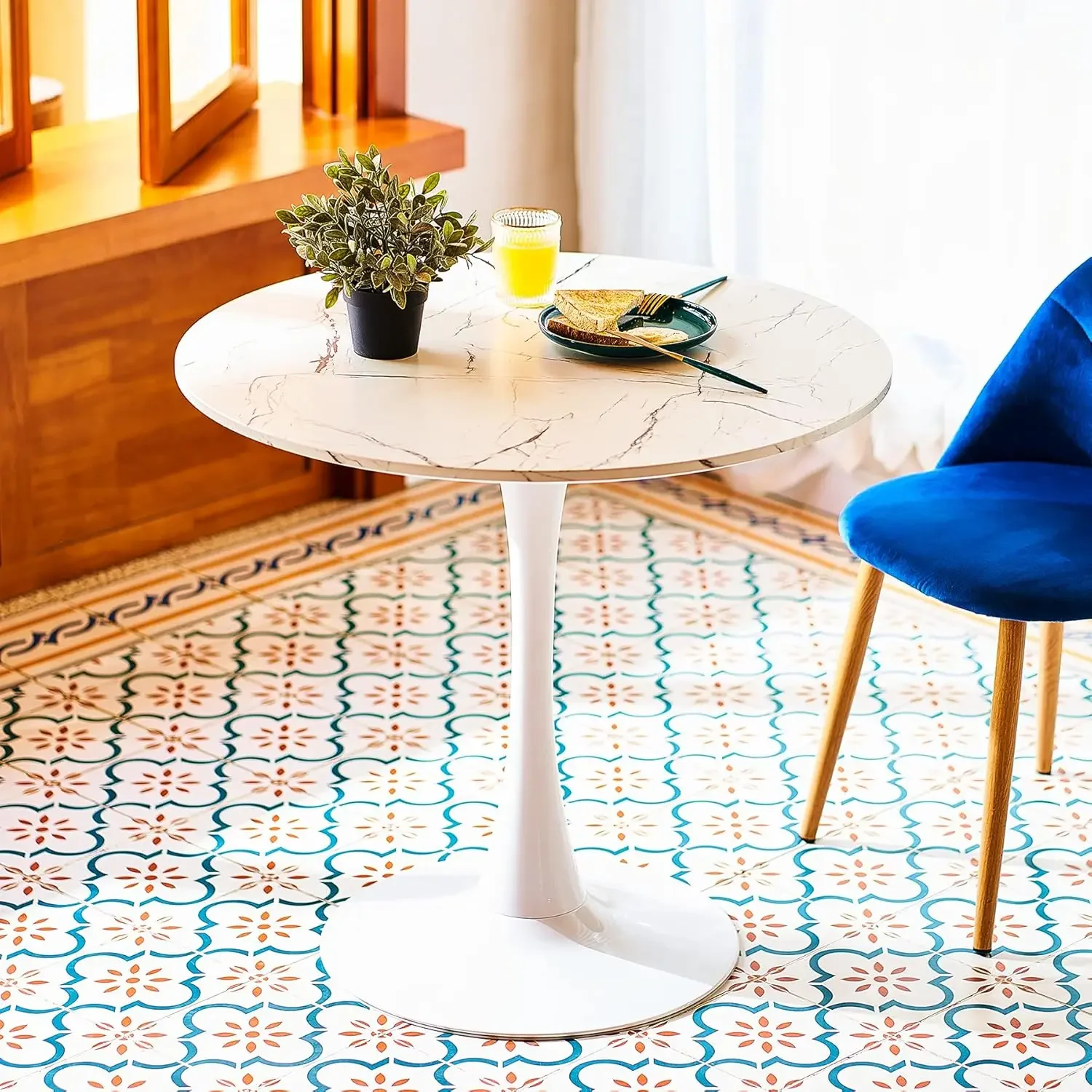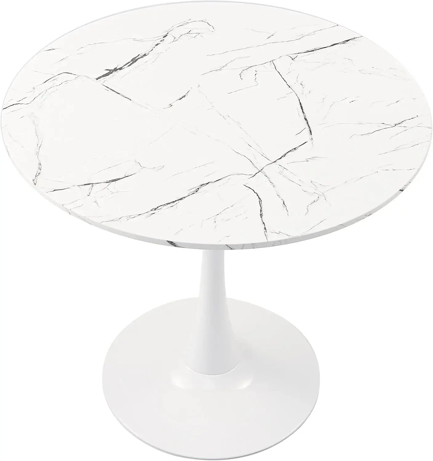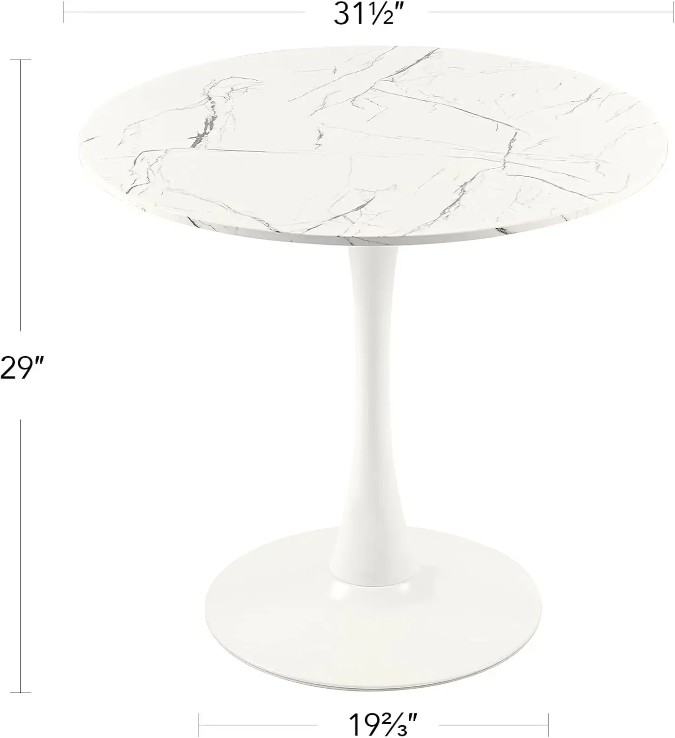 32 Inch |Round Dining Table with Faux Marble Top for Kitchen Bar Patio and More| Modern Small Coffee Table Living Room Accent