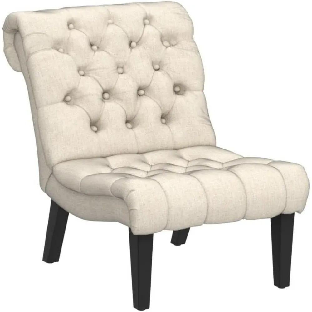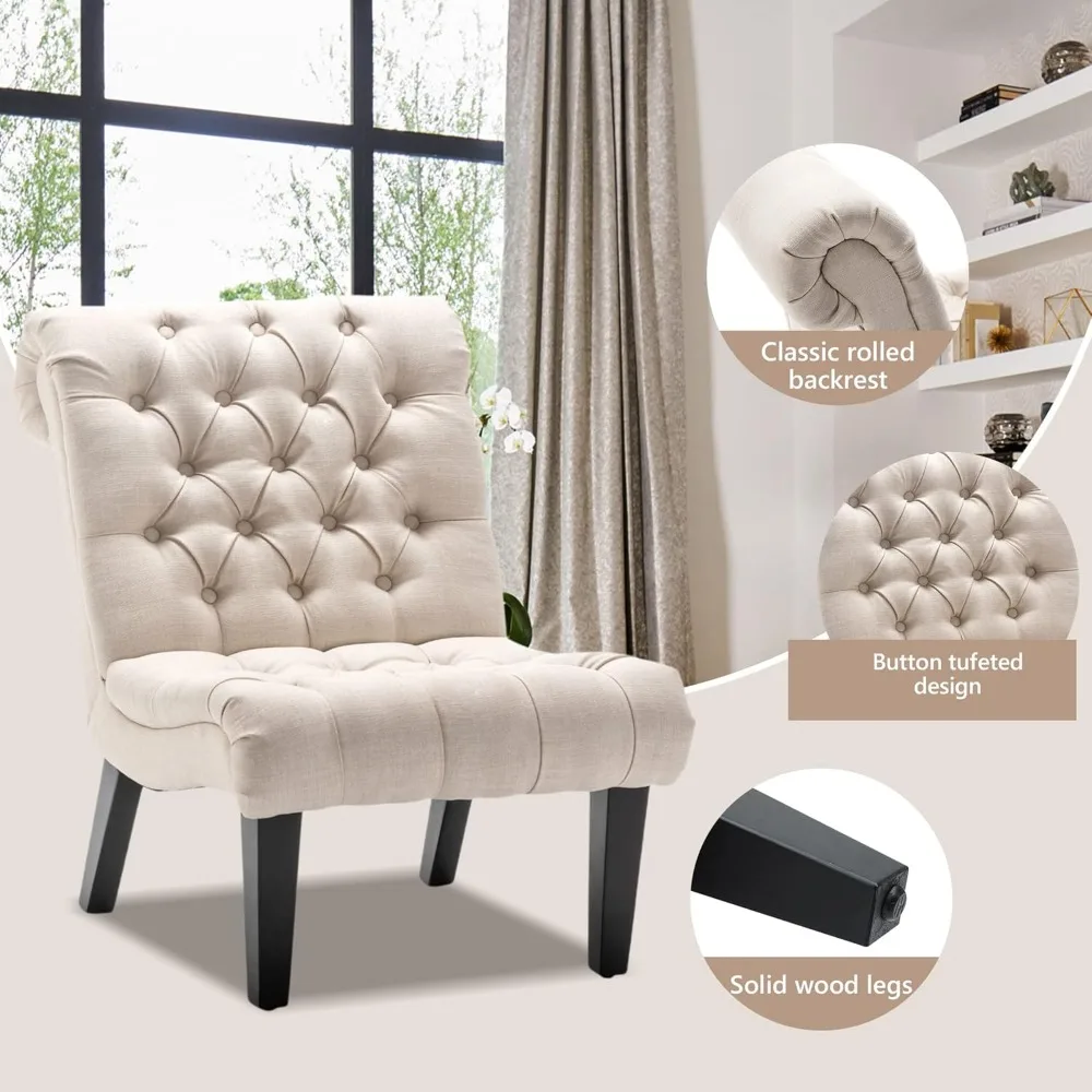 Accent Chairs Set of 2 Modern Armless Living Room Bedroom Chairs Upholstered Button Tufted Slipper Chairs with Solid W