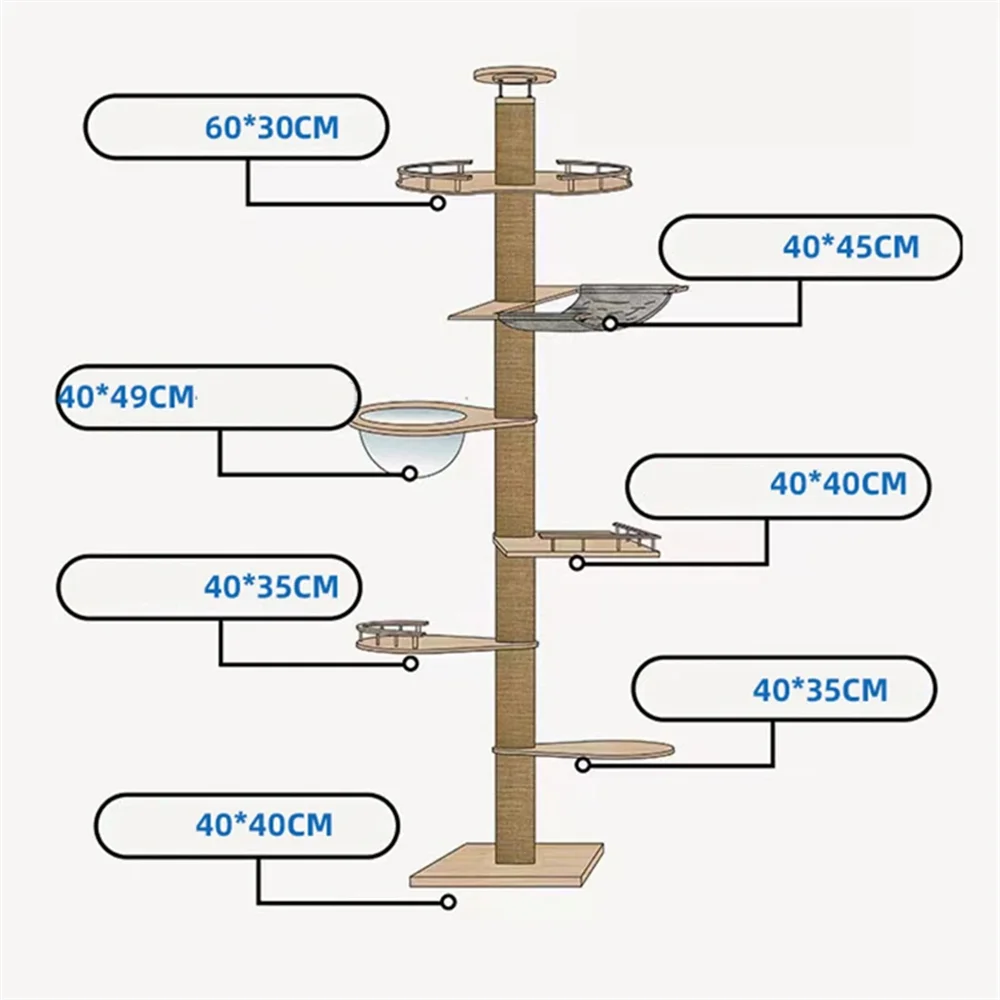 Adjustable Cat Climbing Frame from Floor to Ceiling Height For Multi-Level Cat Tree House Springboard Rest Activity Pet Supplies