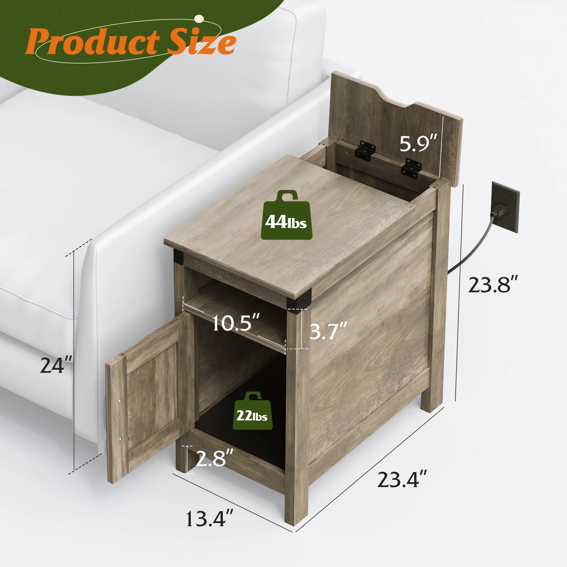 4.Safe and Stable: Designed with a flip-top and built-in plug for added safety, it ensures stability and can be placed securely between sofas or beds.