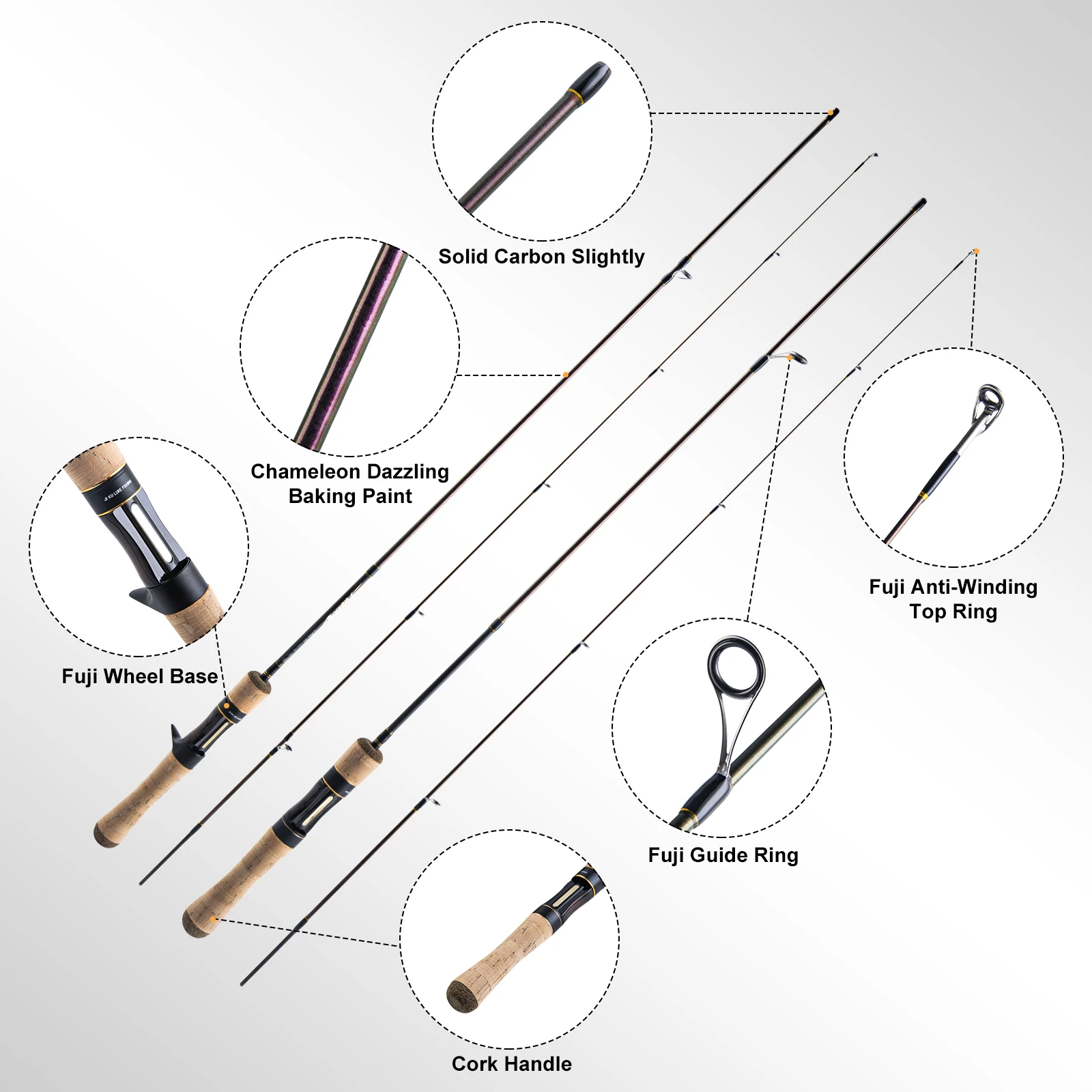 1.【Chameleon Dazzling Baking Paint】The ultralight fishing rod will show two color effects of purple or green under different light.