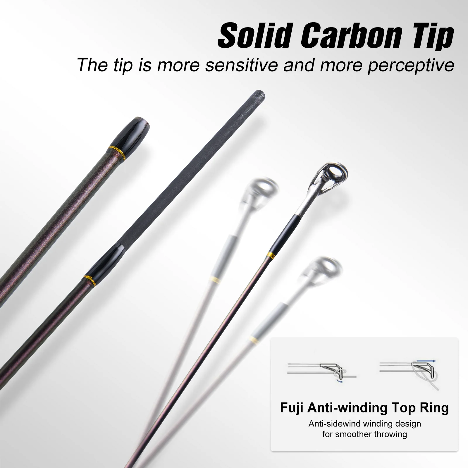 2.【30T + 40T Carbon Cloth】 The ultralight fishing rod using 30T + 40T carbon cloth,with higher density,Better stability and more durability.