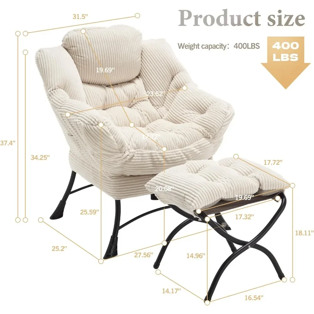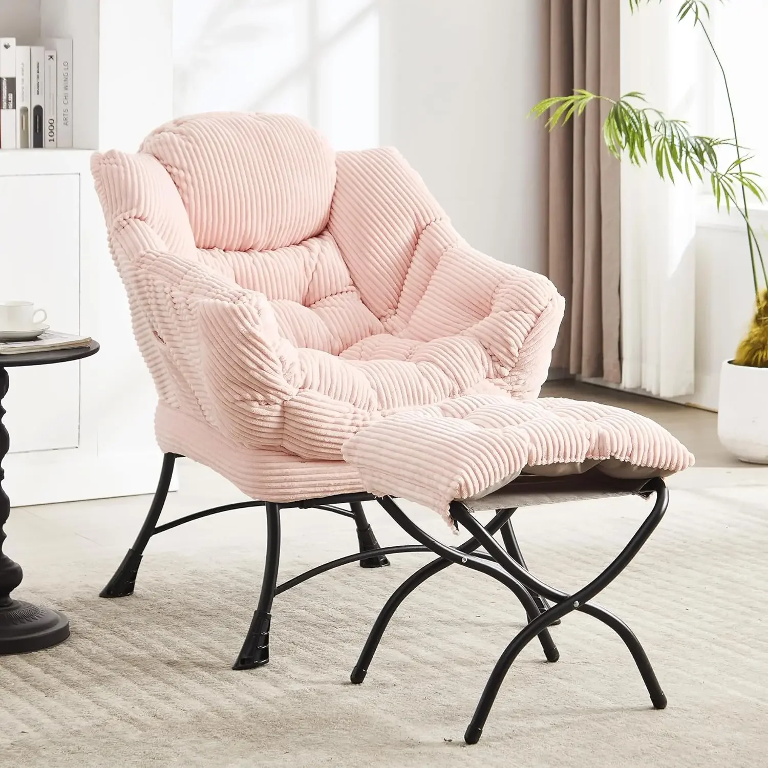 Lazy Chair with Ottoman Bedroom Chairs for Adults Modern Lounge Accent Chair with Armrests, Ergonomic Footrest for Small Spaces