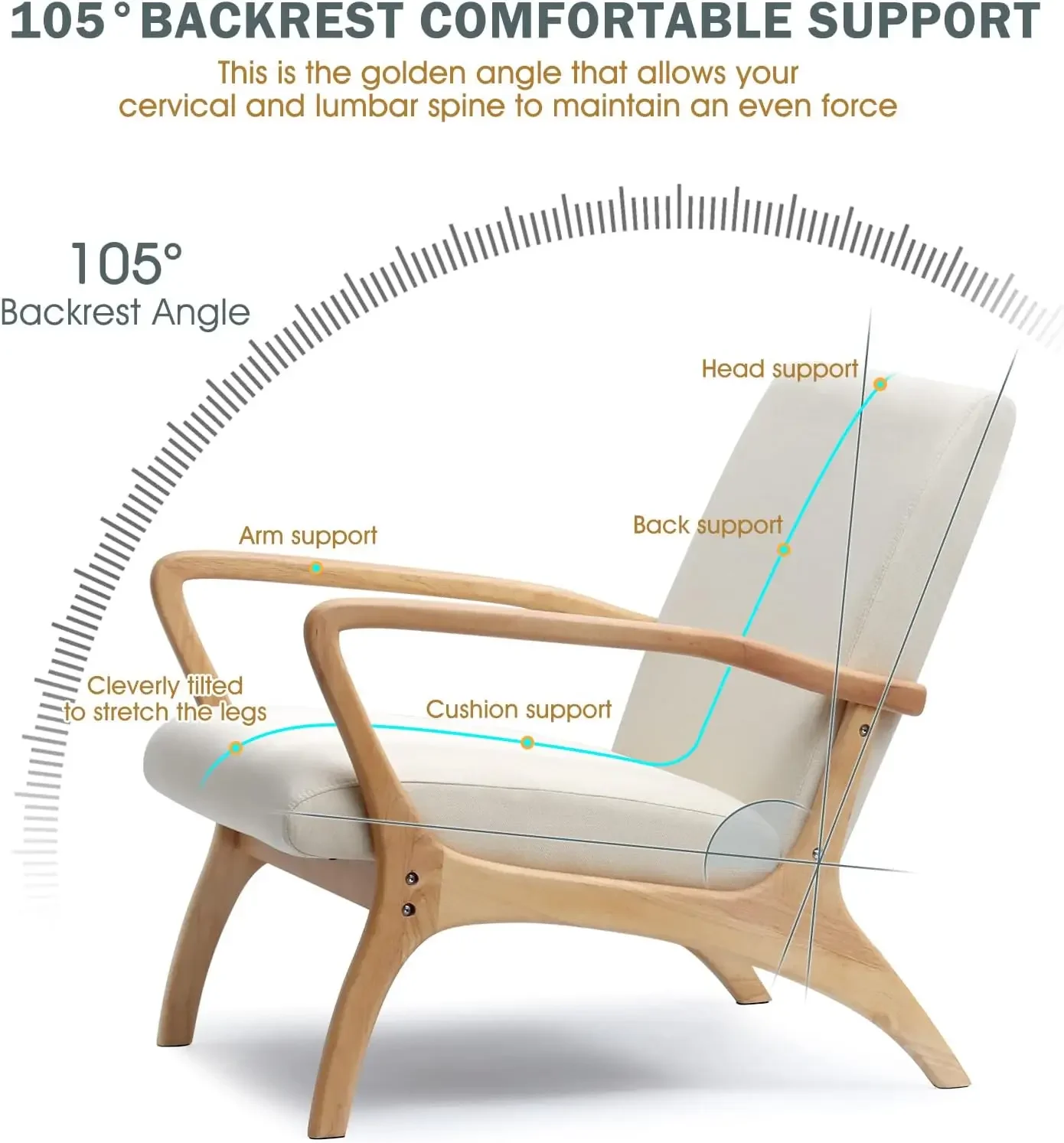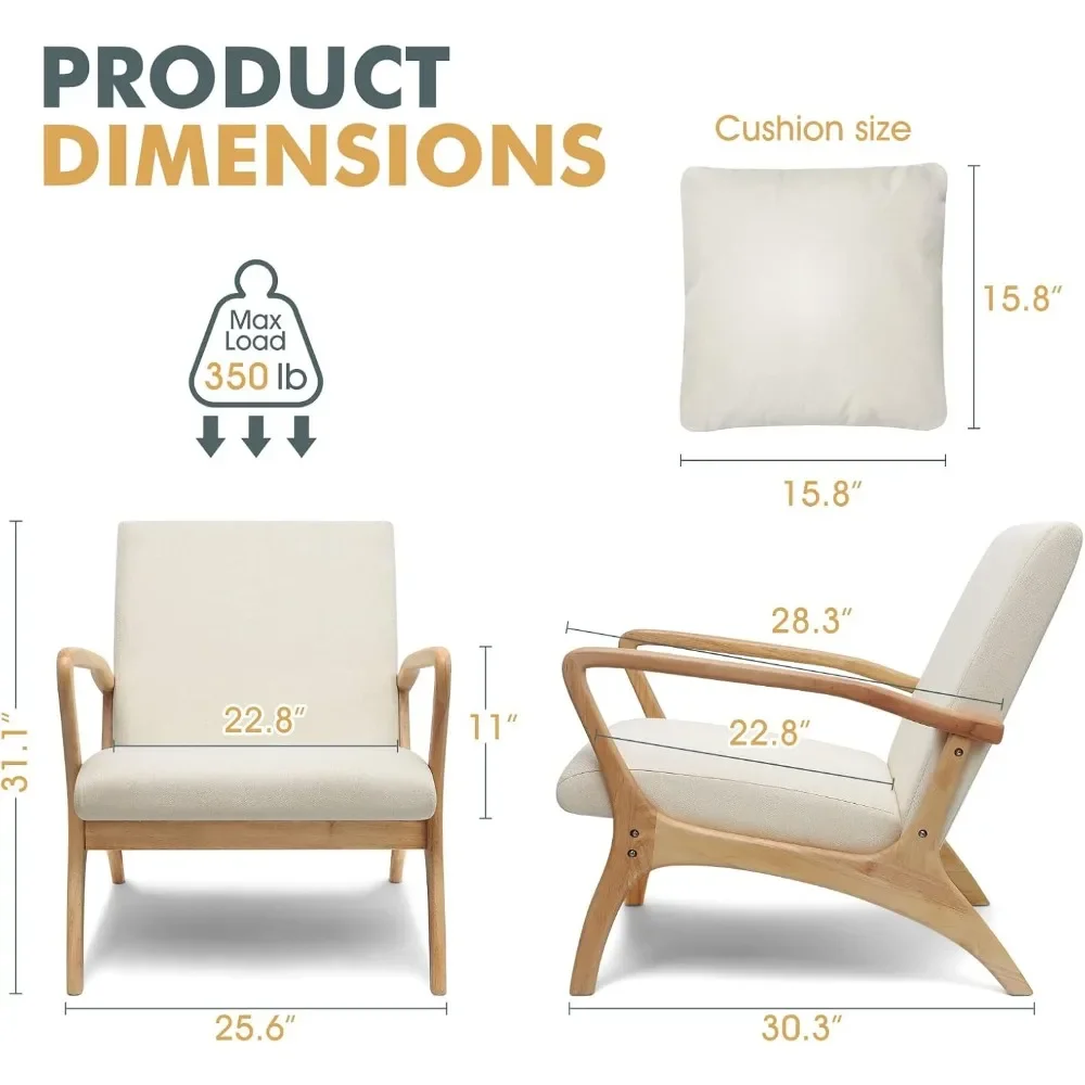 Mid-Century Modern Accent Chair with Cushion, 28.3'' Long Armrest Chairs Upholstered Linen Fabric Wood Frame Armchair