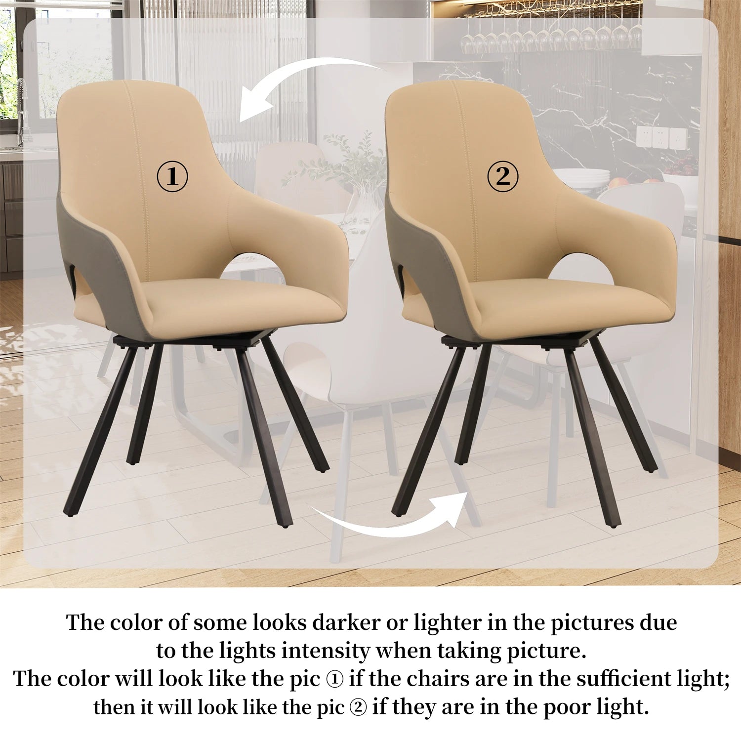 Mid Century Modern Kitchen Dining Room Chairs Set of 2 Swivel Upholstered Accent Chair Microfiber Leather for Homes