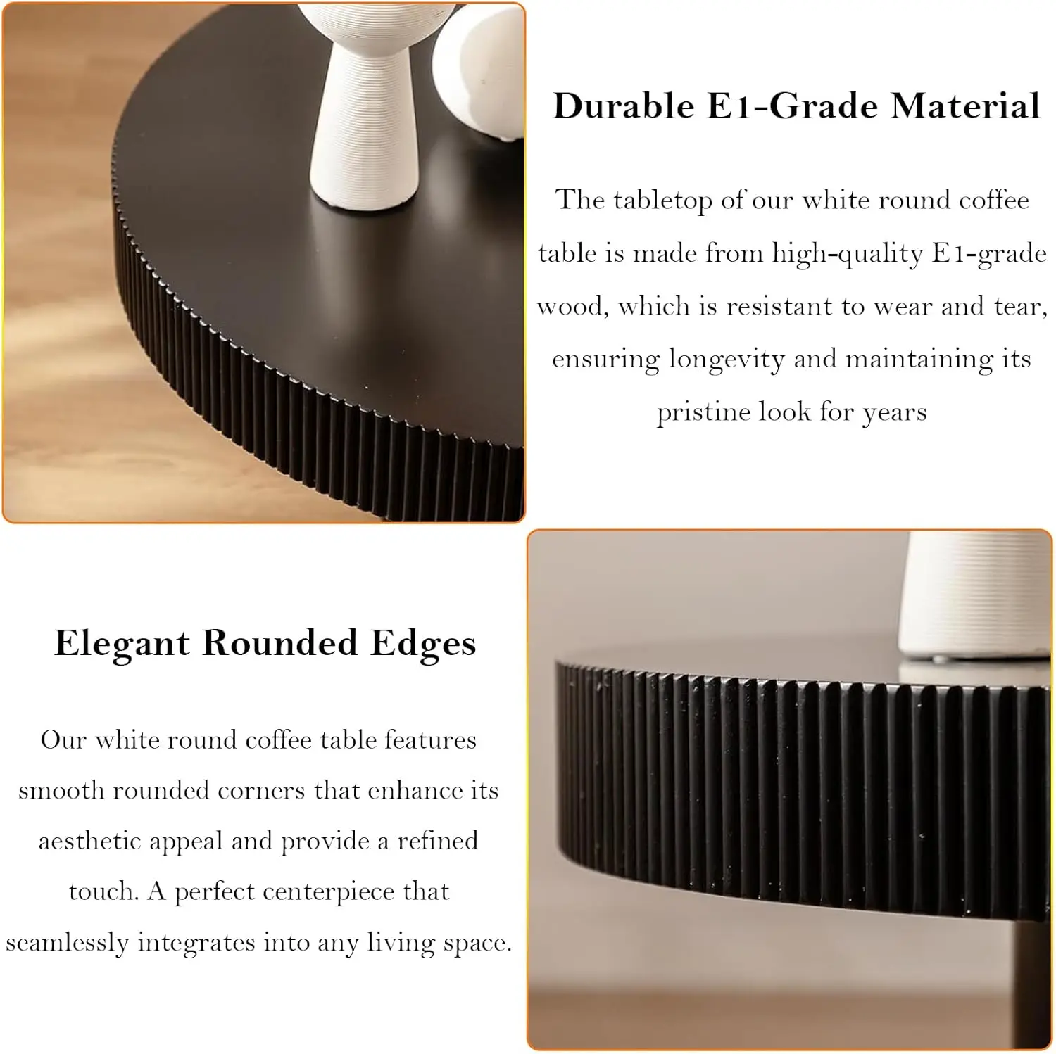 - Stylish & Practical Coffee Table: The round coffee table features a stylish texture relief design. The unique fluted design will effortlessly blend with your existing decor, whether you prefer a contemporary or minimalist style