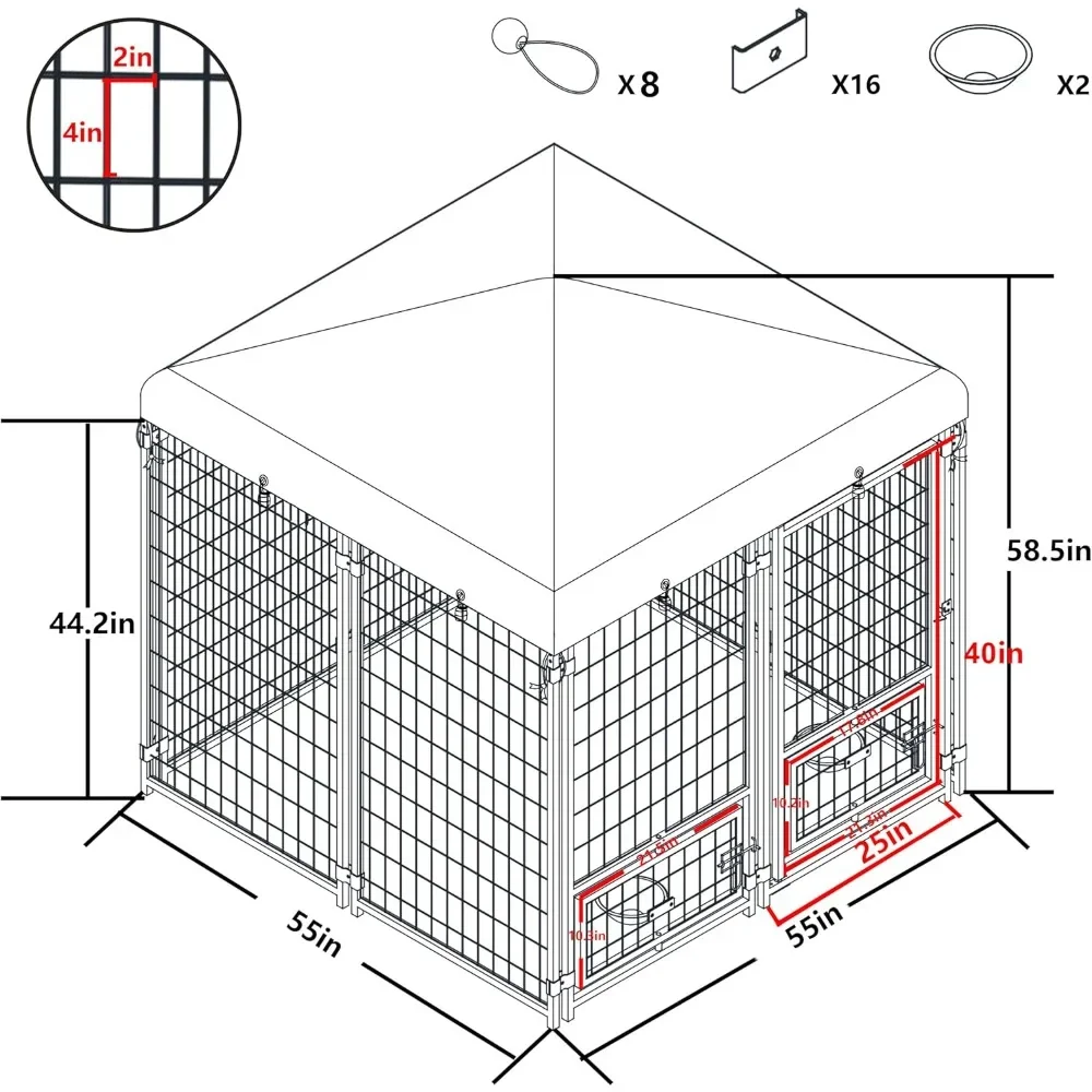 - Easy to assemble: This sturdy kennel with upgraded assembly construction allows you easily get assembled and disassembled, then move to another location and reassembled there if desired. You can also expand the kennel in directions with same parts#, but you won't be able to use the tops if expanding