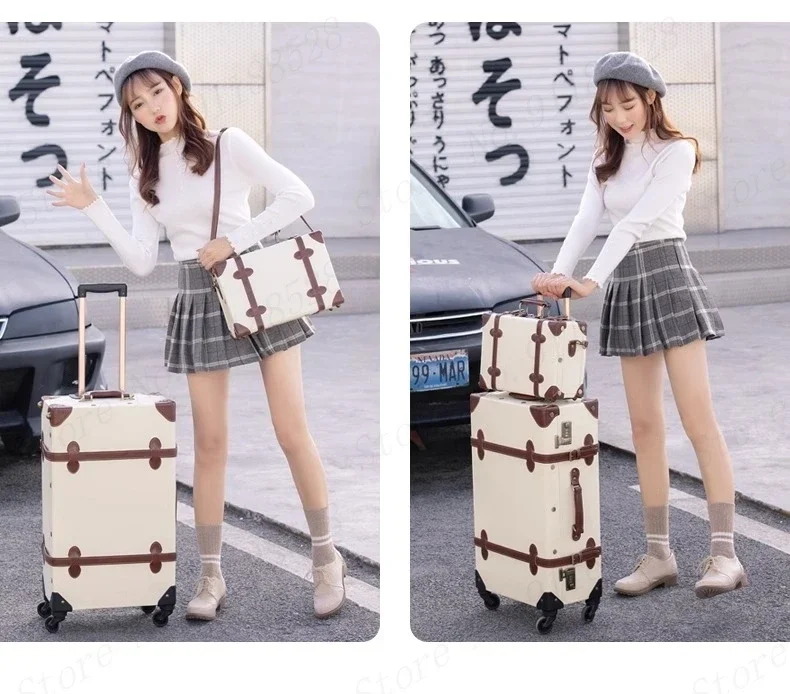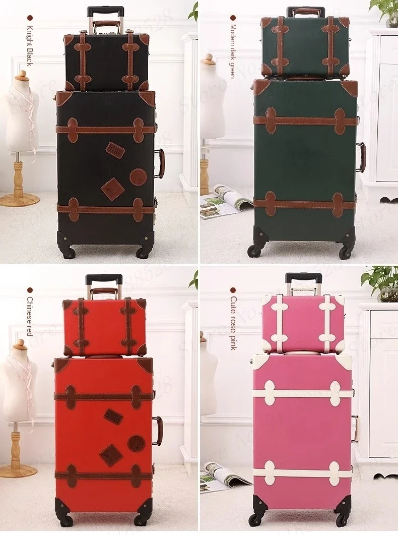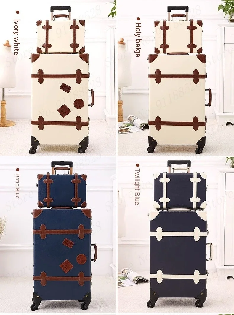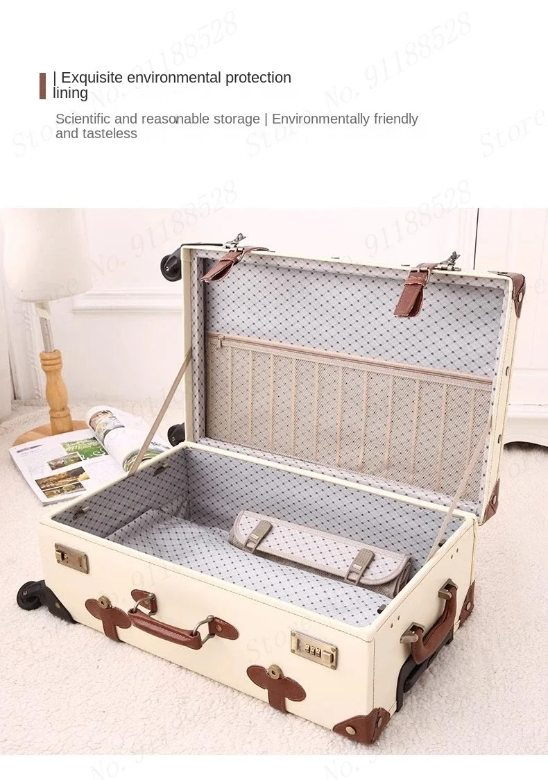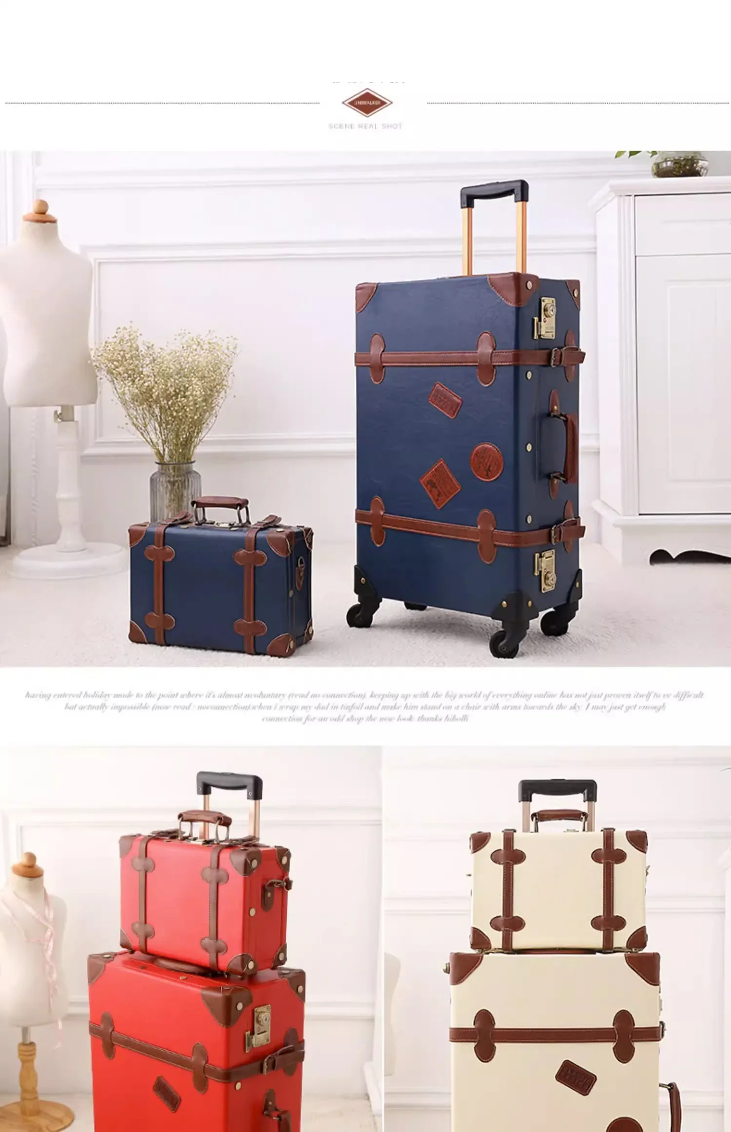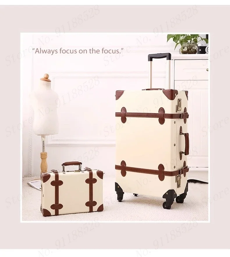 Retro Rolling Luggage Spinner Wheels Suitcase Combination TSA Lock Vintage Trolley Luggage Sets with Small Travel Bag