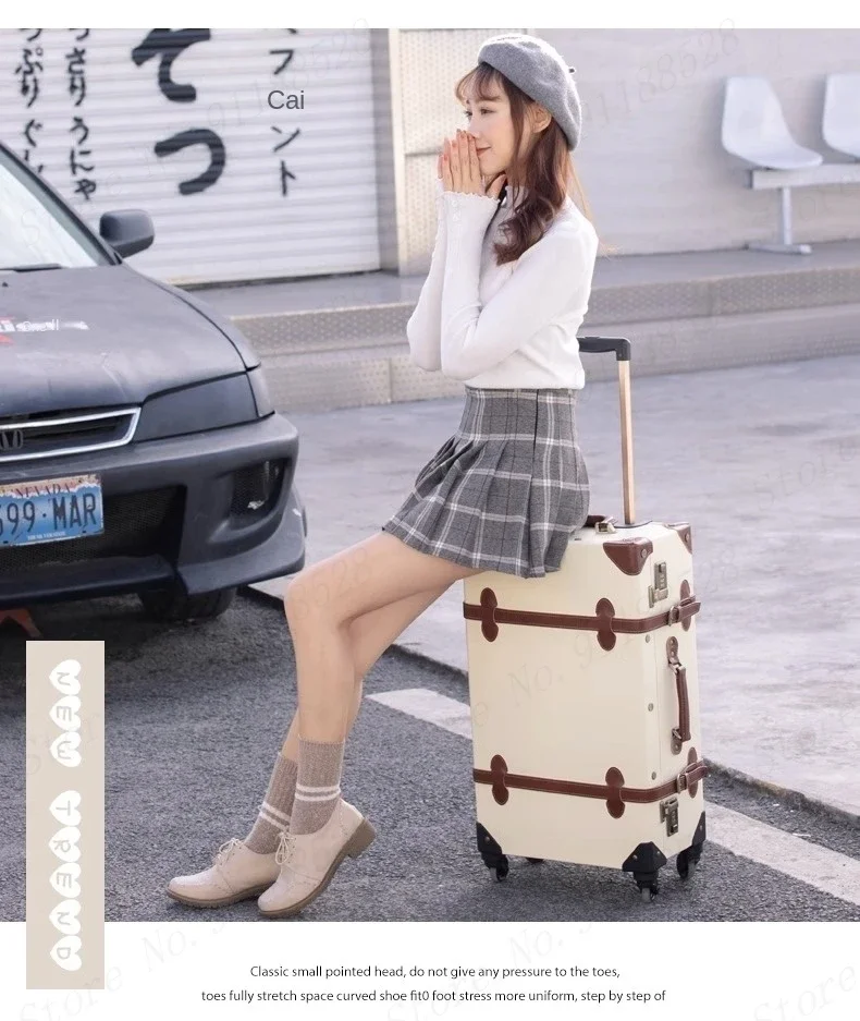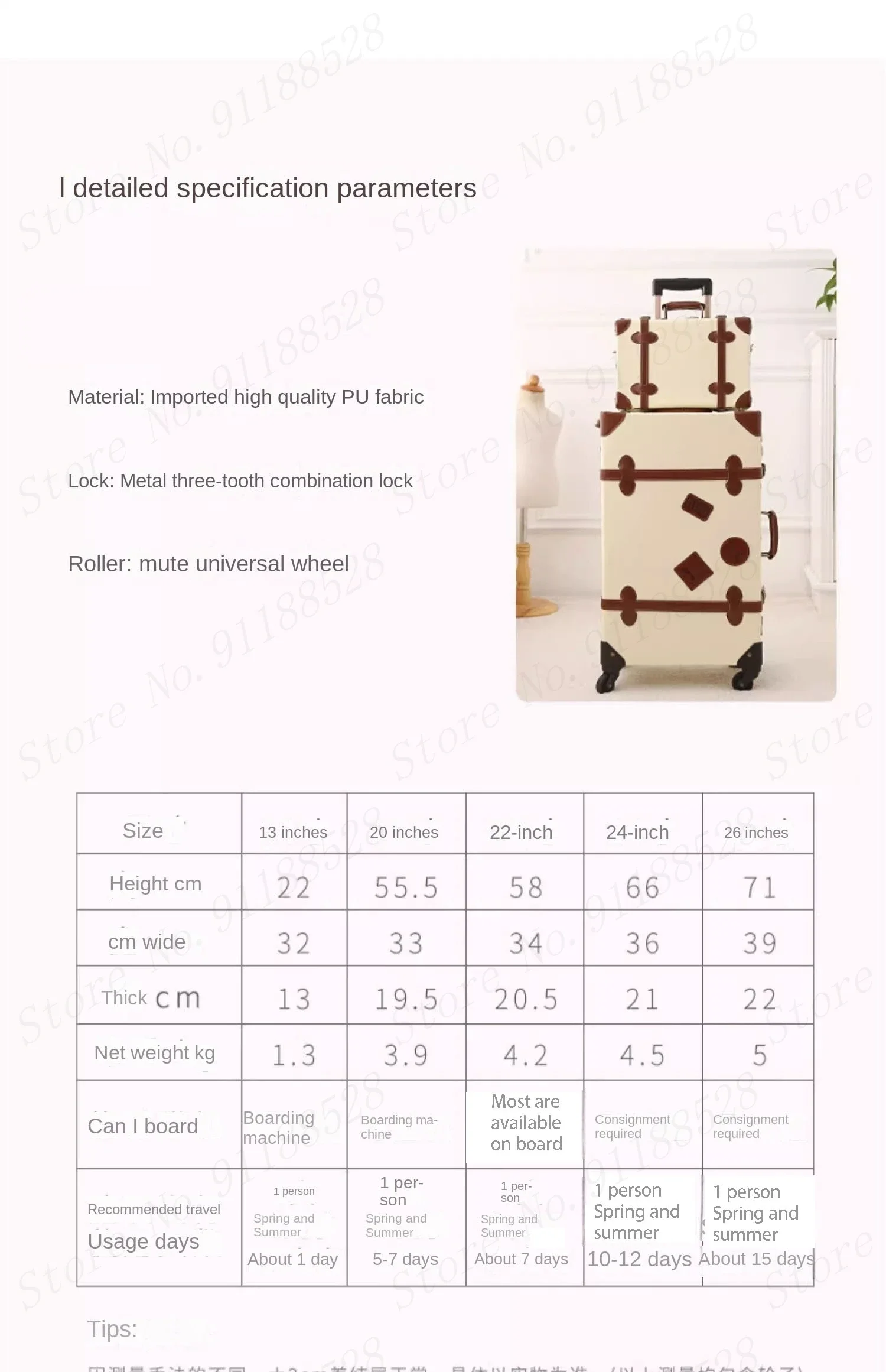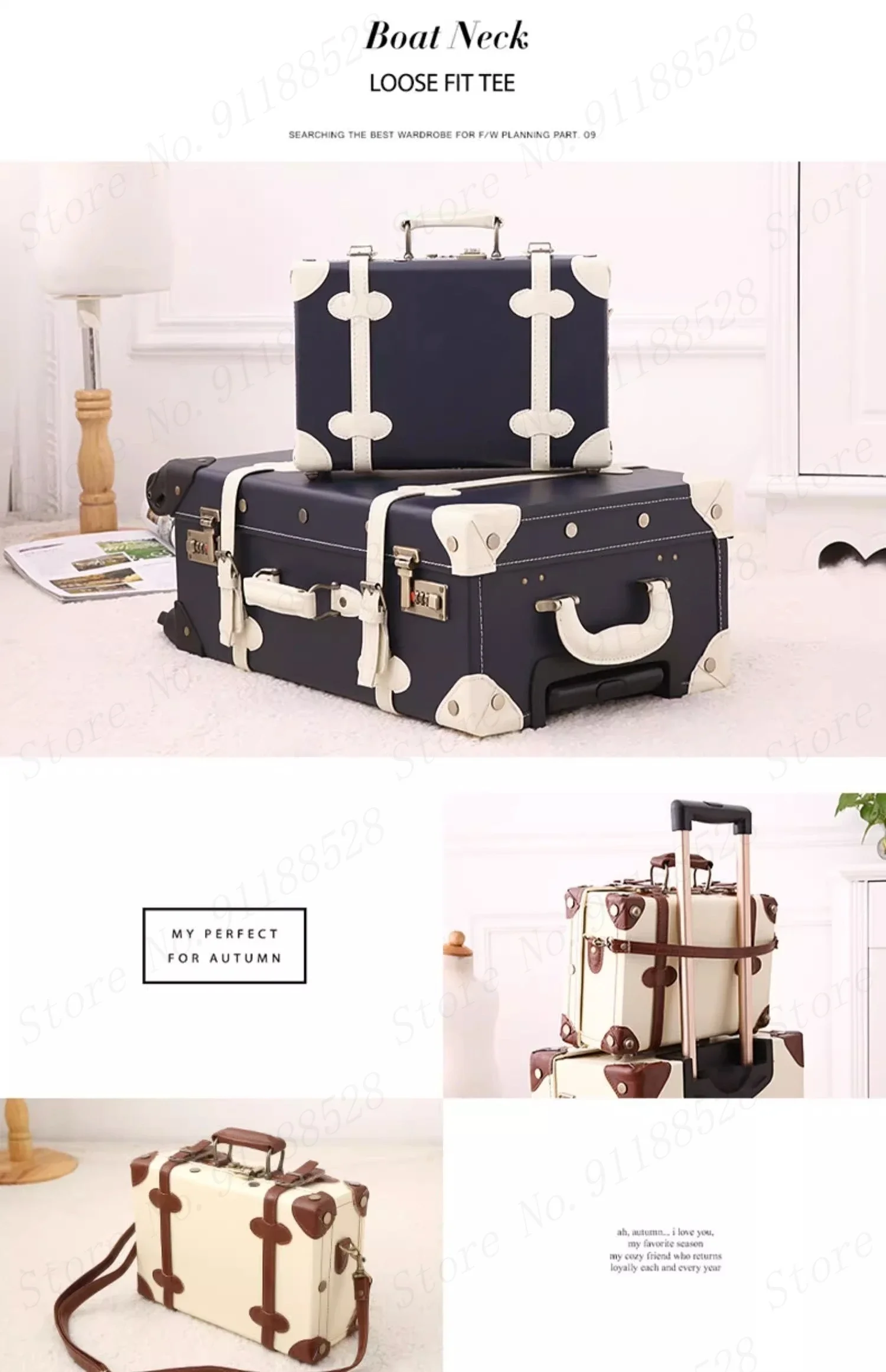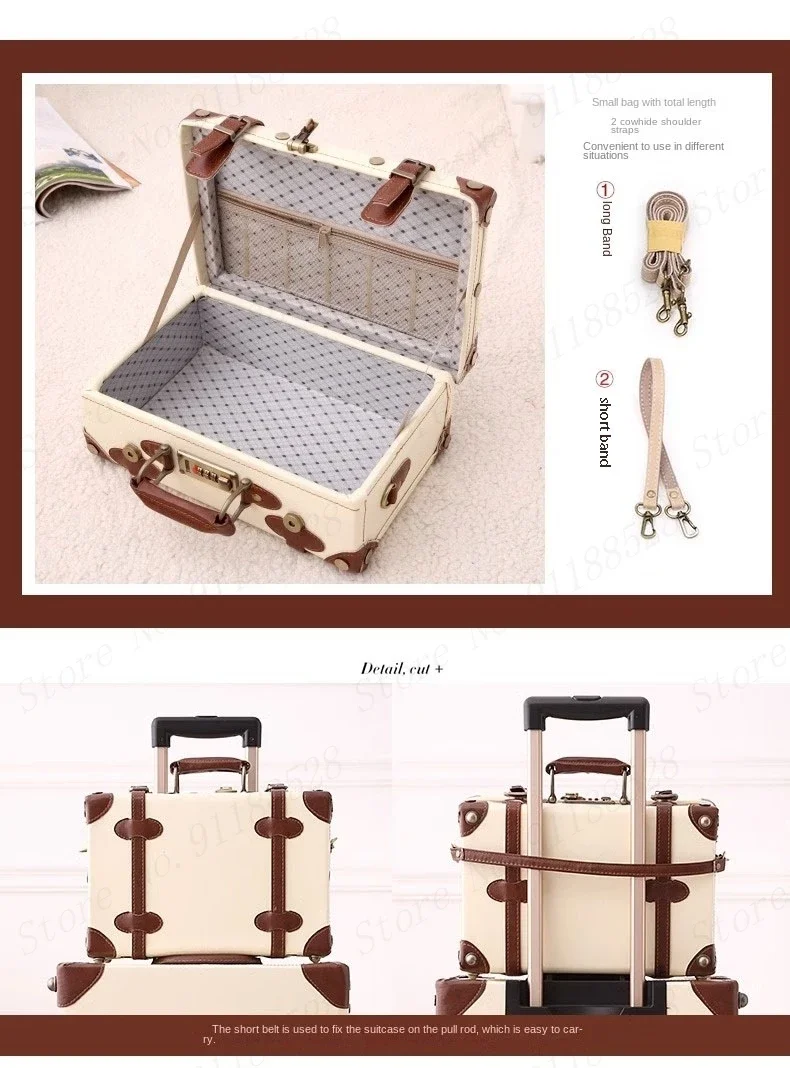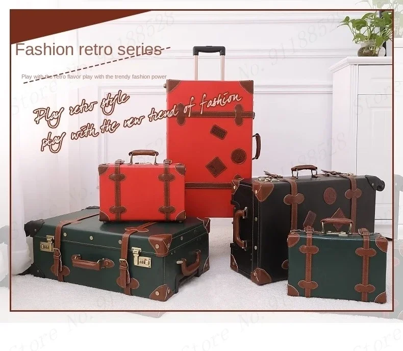 Retro Rolling Luggage Spinner Wheels Suitcase Combination TSA Lock Vintage Trolley Luggage Sets with Small Travel Bag