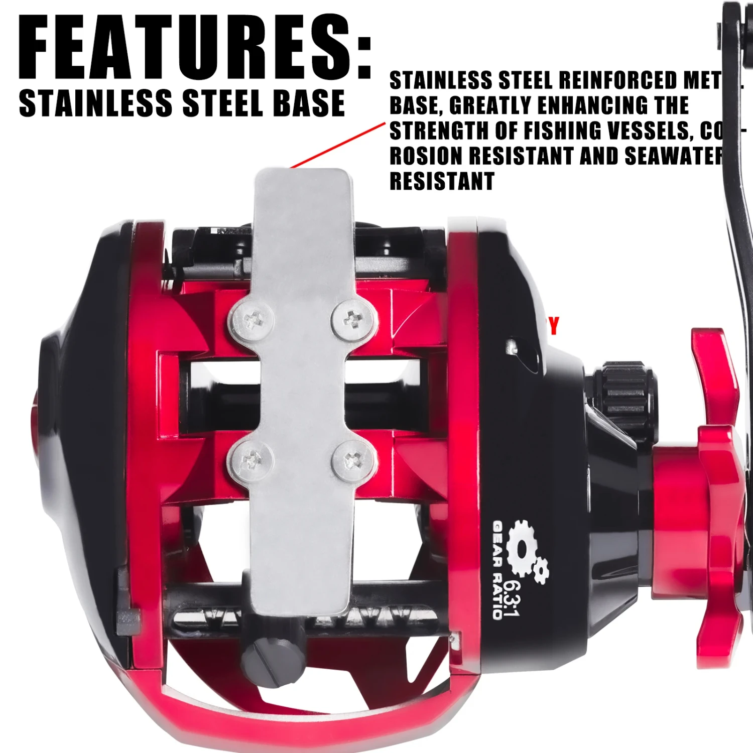 1. This high-performance Sea Fishing Large Baitcasting Fishing Reel is designed for saltwater use with its waterproof construction and corrosion-resistant metal base. With a 6.3:1 gear ratio and 15KG drag, this reel is perfect for catfishing trolling and offers smooth casting and powerful drag system.