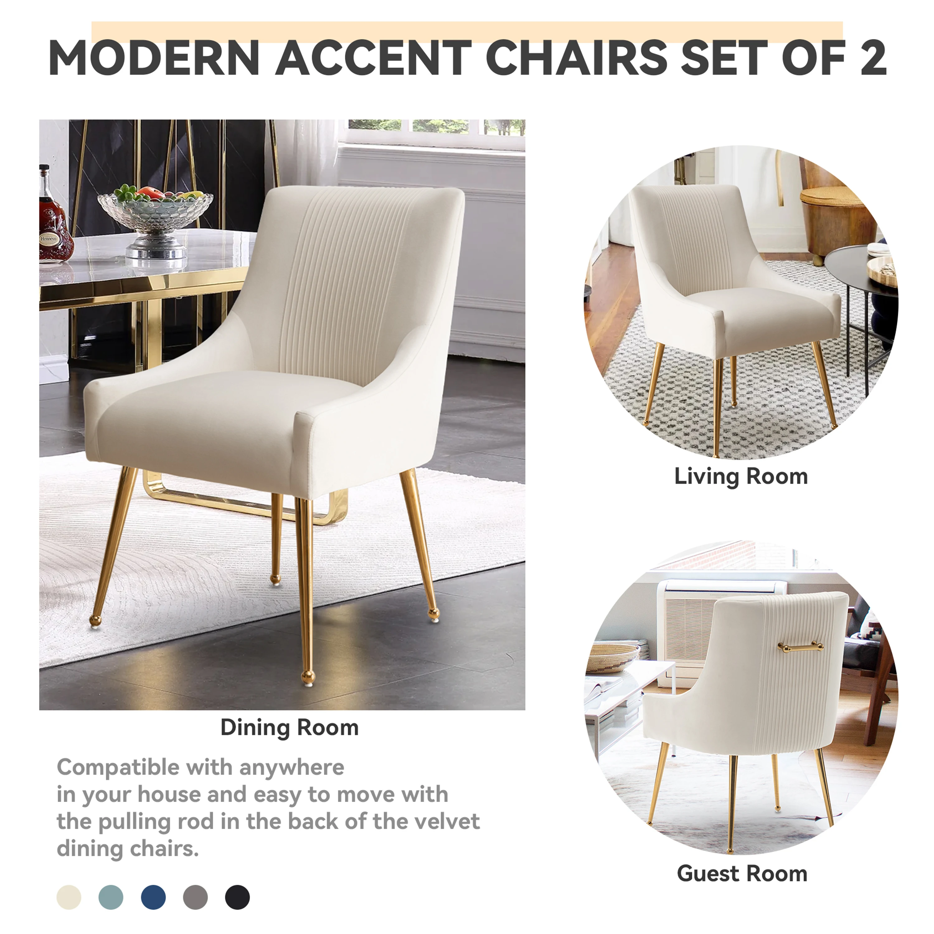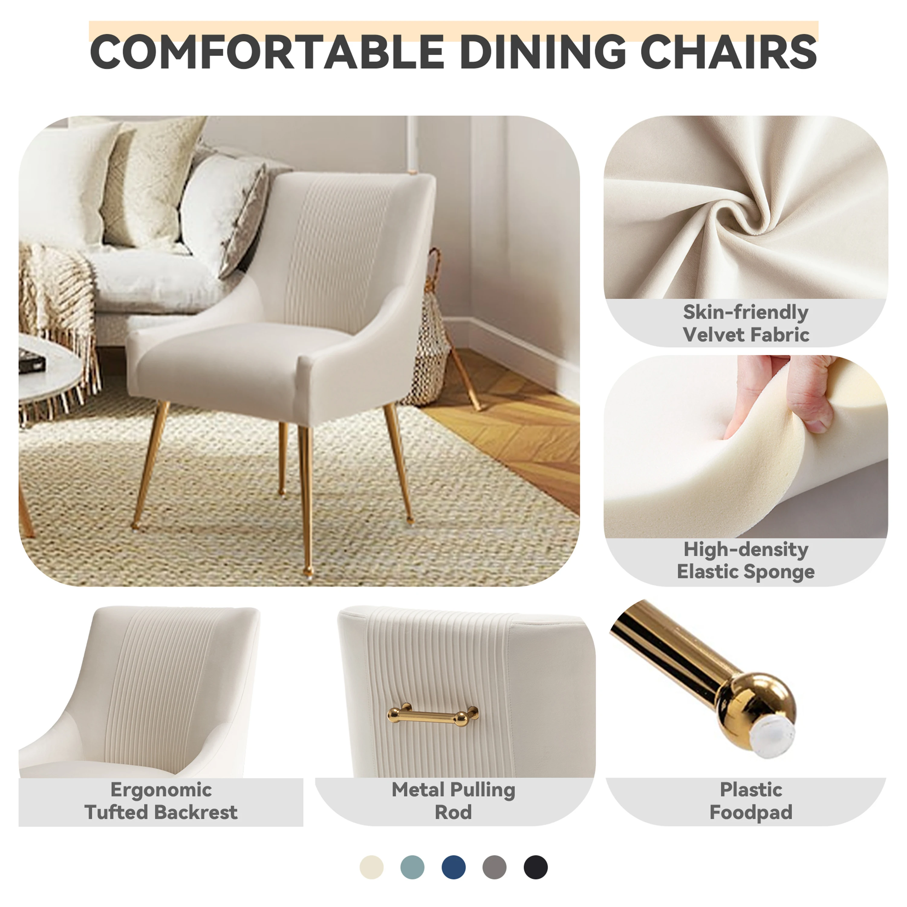 Elevate your living space with this stylish and cozy accent dining chair. Crafted with exquisite upholstery, it emanates opulence and refinement, while its medium-density foam padding and robust frame ensure utmost comfort and stability. The contemporary golden metal legs introduce a hint of sophistication to the timeless design, rendering this chair set adaptable to any space in your abode. Whether you seek to enhance your dining area, lounge, den, bedroom, or study, this upholstered chair set stands as the quintessential selection for chic seating.