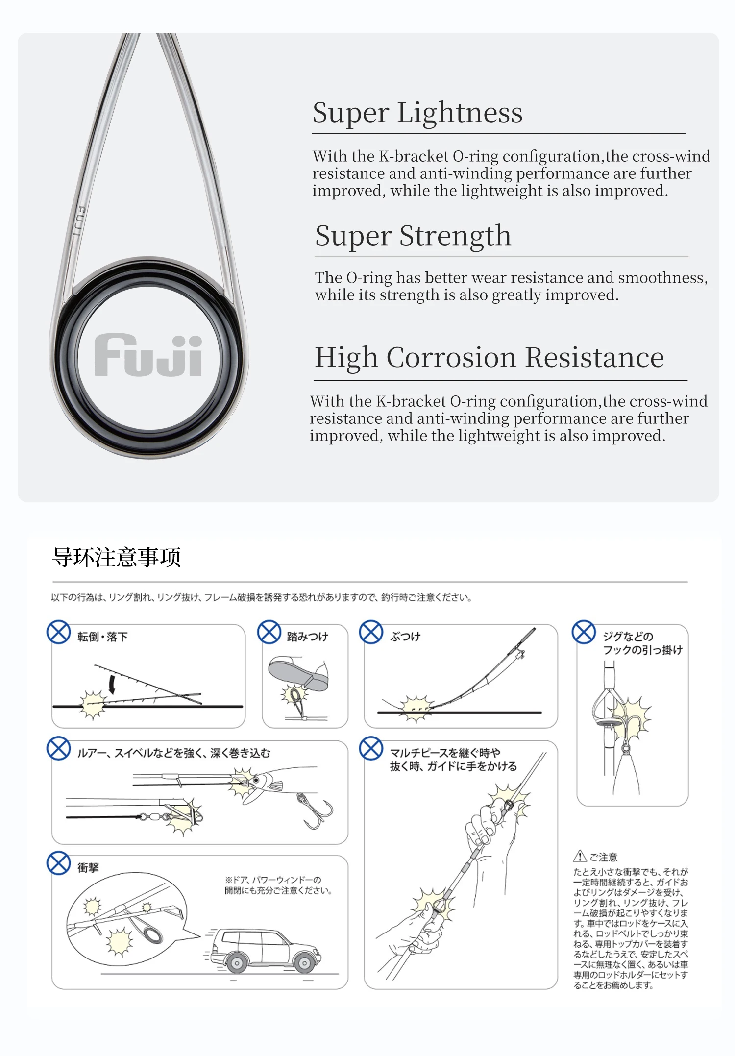 -FUJI "O" ring and "K" guide helping to cast smoothly by its low friction and reduce line tangling to the frame.